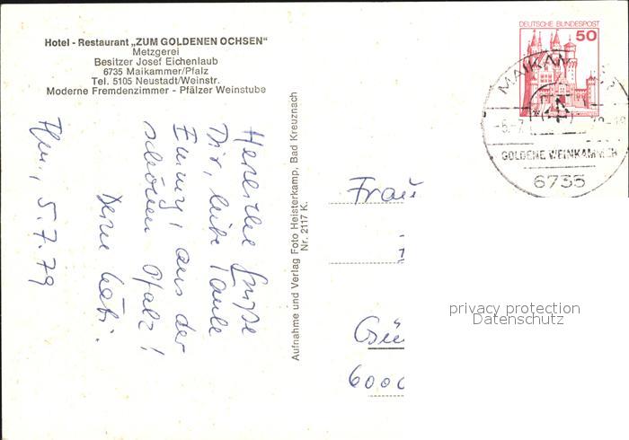 72445818 alte Postkarte Maikammer Hotel Restaurant Zum goldenen Ochsen Speisesaal postalisch gelaufen Erhaltung siehe scans KatCode: 11110007337052