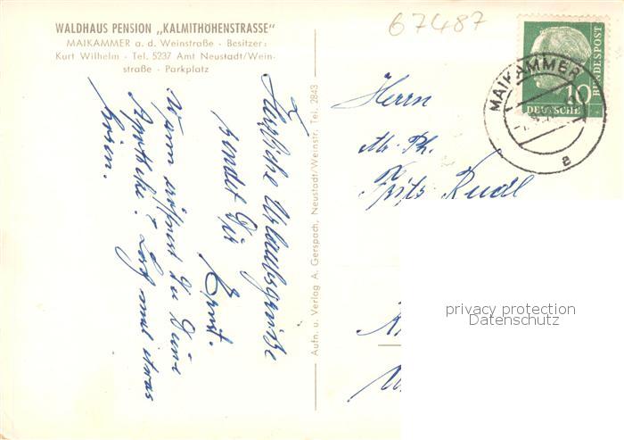 73854371 alte Postkarte Maikammer Waldhaus Pension Kalmithoehenstrasse Biergarten postalisch gelaufen Erhaltung siehe scans [FriedD77] KatCode: 11110007337052