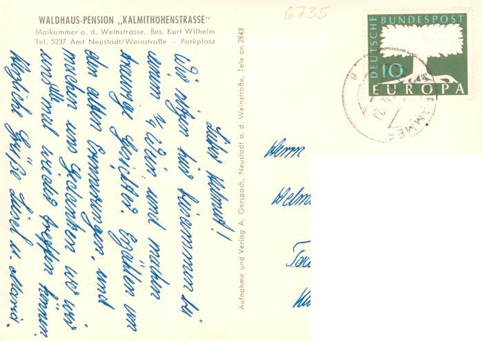 73873515 alte Postkarte Maikammer Waldhaus Pension Kalmithoehenstrasse postalisch gelaufen Erhaltung siehe scans [FriedD77] KatCode: 11110007337052