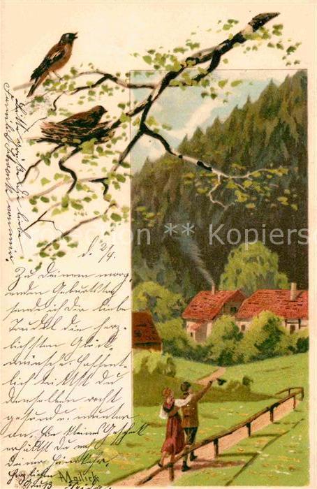 alte Postkarte Mailick Wandern Voegel Litho postalisch gelaufen Erhaltung siehe scans [PaolaD17]