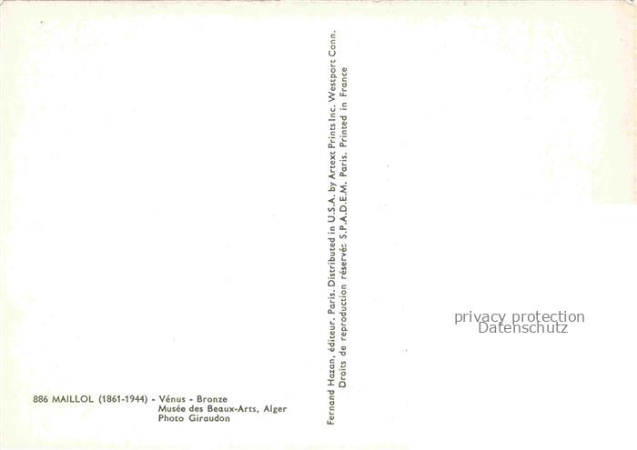 74063092 MAILLOL (1861-1944) Skulpturen Nr. 886 Venus Bronze postalisch nicht gelaufen Erhaltung siehe scans [IrynaD87] KatCode: 22500000001000
