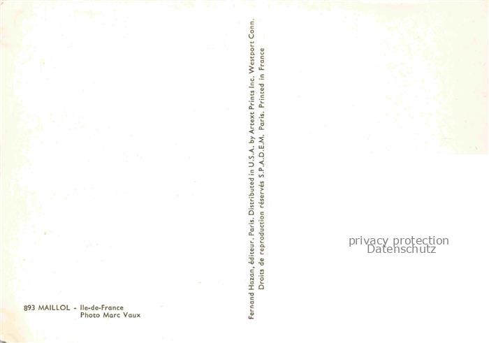74063091 MAILLOL (1861-1944) Skulpturen Nr. 893 Ile de France postalisch nicht gelaufen Erhaltung siehe scans [IrynaD87] KatCode: 22500000001000