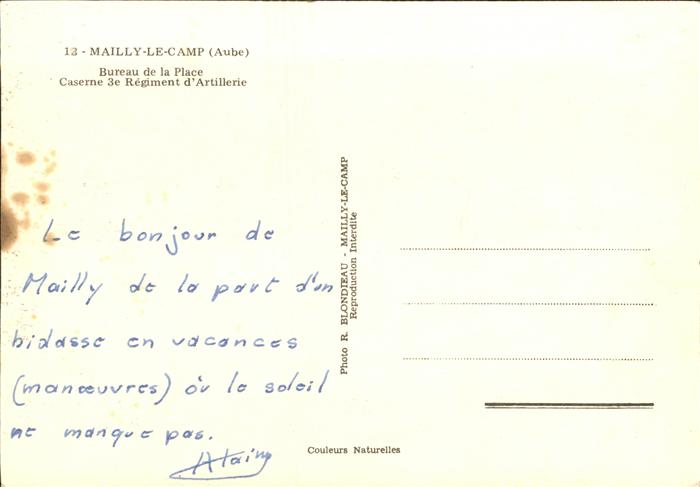 11324512 Mailly-le-Camp Bureau de la Place Caserne 3e Regiment d_Artillerie KatCode 11170010310216
