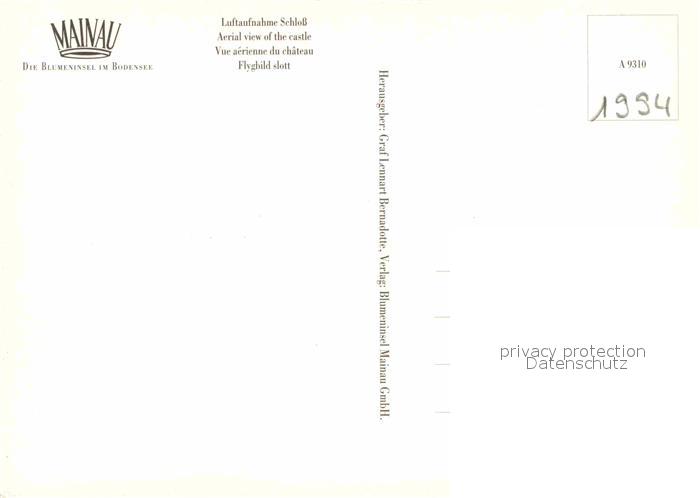 72909228 Mainau Fliegeraufnahme Schloss postalisch nicht gelaufen Erhaltung siehe scans [NatalD47] KatCode: 11110008335043