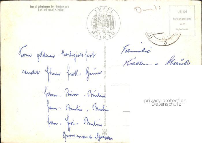 72427260 alte Postkarte Mainau Insel Bodensee Schloss Kirche postalisch gelaufen Erhaltung siehe scans KatCode: 11110008335043