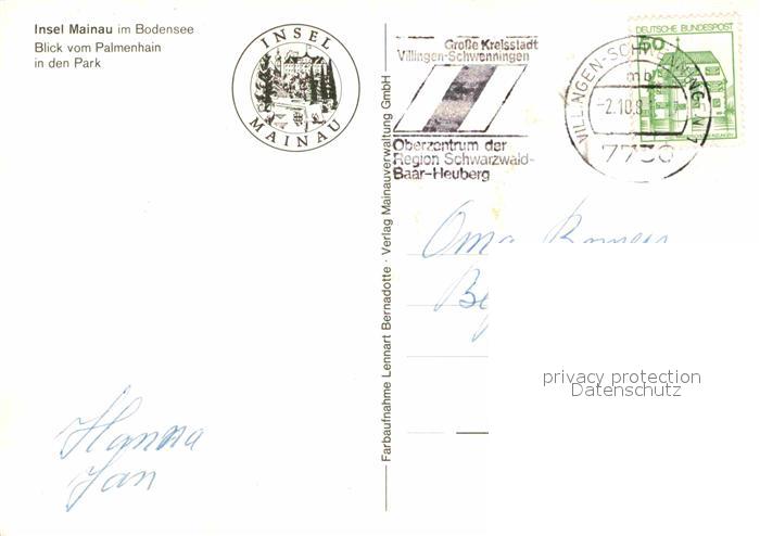 72845240 alte Postkarte Mainau Palmenhain Park postalisch gelaufen Erhaltung siehe scans [NatalD47] KatCode: 11110008335043