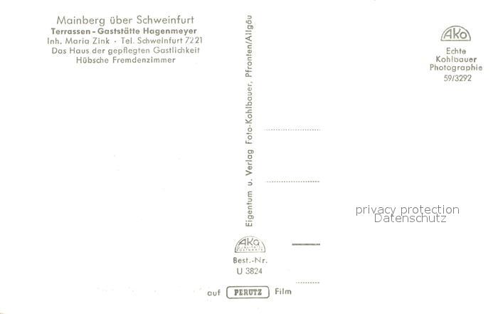 73671675 Mainberg Terrassen Gaststaette Hagenmeyer postalisch nicht gelaufen Erhaltung siehe scans [WerneD78] KatCode: 11110009678174