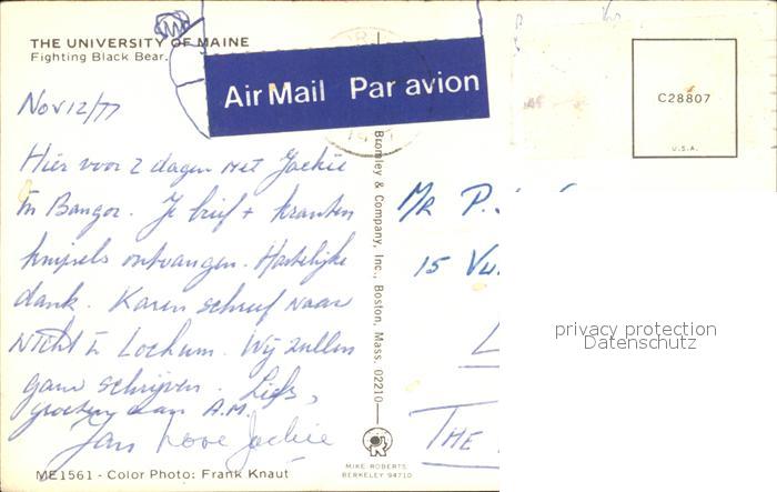 72498470 old postcard Maine The University of Maine fighting black bear postalisch gelaufen Erhaltung siehe scans KatCode: 14140340000000