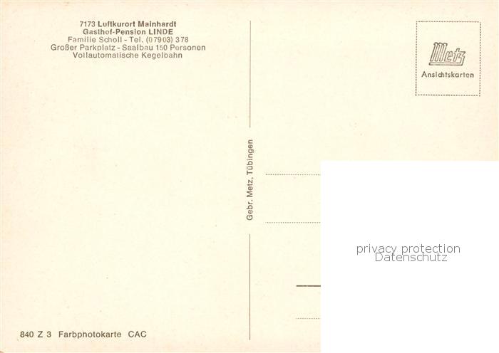 73835667 Mainhardt Gasthof Pension Linde postalisch nicht gelaufen Erhaltung siehe scans [WerneD78] KatCode: 11110008127052