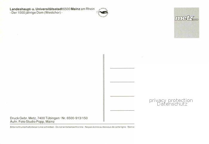 72797124 Mainz Rhein 1000 jaehriger Dom postalisch nicht gelaufen Erhaltung siehe scans [LiesaD40] KatCode: 11110007315000