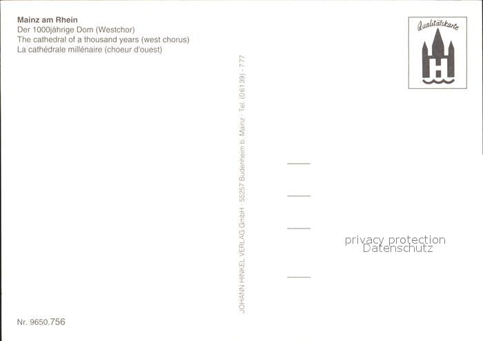 72369438 Mainz Rhein 1000jaehrige Dom postalisch nicht gelaufen Erhaltung siehe scans KatCode: 11110007315000