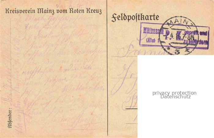 74099640 alte Postkarte MAINZ Rhein Ansicht Rheinseite Kreisverein Mainz vom Roten Kreuz Kuenstlerkarte Pruefstempel Feldpost postalisch gelaufen Erhaltung siehe scans [FriedD77] KatCode: 11110007315000