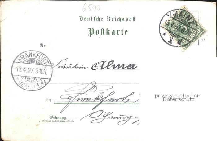 41781815 alte Postkarte Mainz Rhein Bahnhof Dom Gutenberg Denkmal Schloss Museum Rheindampfer Deutsche Reichspost postalisch gelaufen Erhaltung siehe scans KatCode: 11110007315000