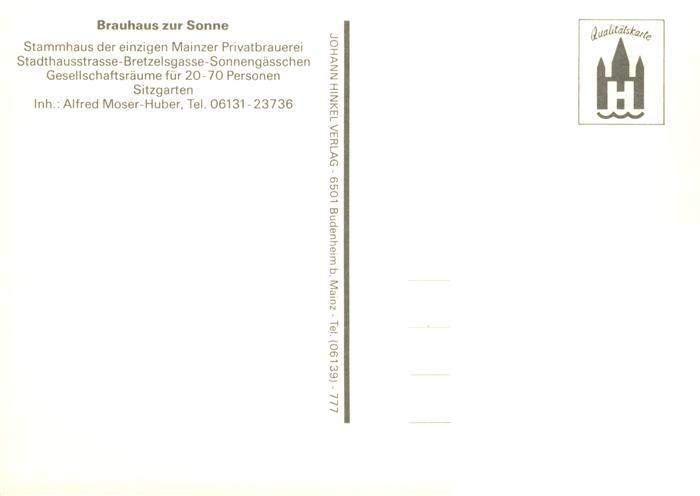 73875494 Mainz Rhein Brauhaus zur Sonne Gastraeume postalisch nicht gelaufen Erhaltung siehe scans [WerneD78] KatCode: 11110007315000