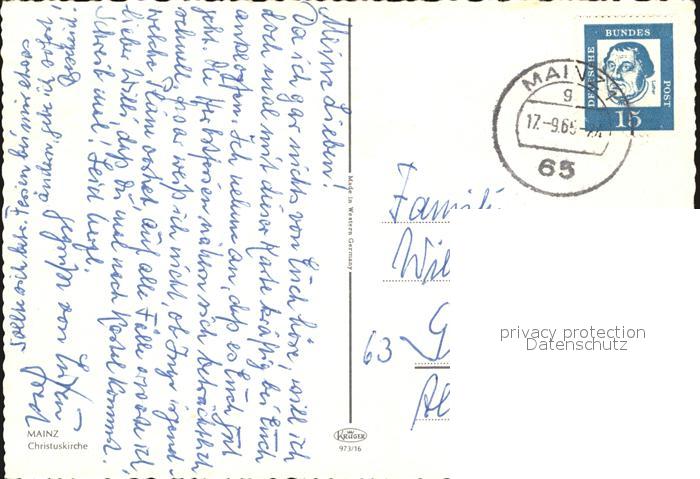 72393944 alte Postkarte Mainz Rhein Christuskirche postalisch gelaufen Erhaltung siehe scans KatCode: 11110007315000