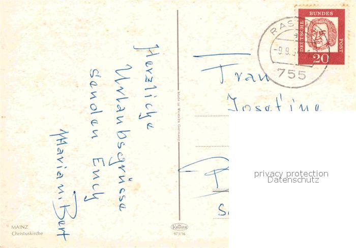 72713150 alte Postkarte Mainz Rhein Christuskirche und Brunnen postalisch gelaufen Erhaltung siehe scans [LiesaD40] KatCode: 11110007315000