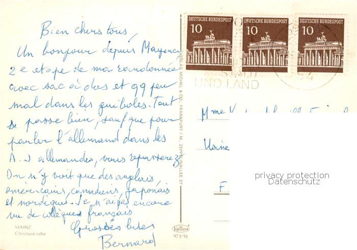 73804299 alte Postkarte Mainz Rhein Christuskirche Wasserspiele postalisch gelaufen Erhaltung siehe scans [WerneD78] KatCode: 11110007315000