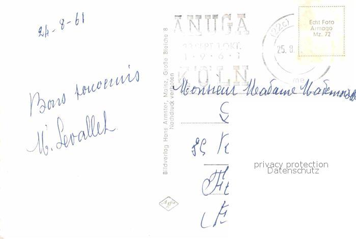 72725049 alte Postkarte Mainz Rhein Dampfer Dom Hafenmuendung Osteiner Hof Stadttheater Johannes Gutenberg Universitaet Telegrafenamt Muensterplatz postalisch gelaufen Erhaltung siehe scans [WerneD78] KatCode: 11110007315000