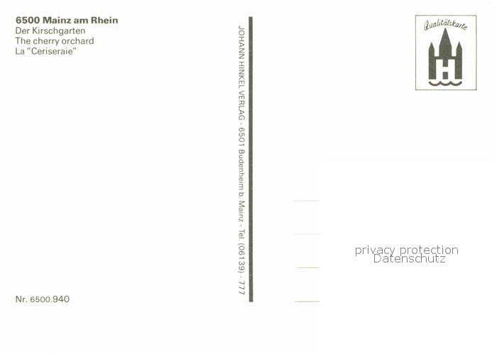 72781398 Mainz Rhein Der Kirschgarten postalisch nicht gelaufen Erhaltung siehe scans [WerneD78] KatCode: 11110007315000
