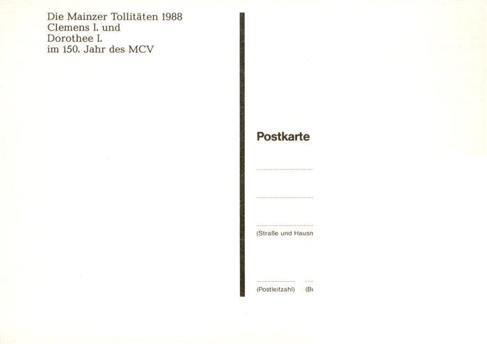 73924582 Mainz Rhein Die Mainzer Tollitaeten Clemens I und Dorothee I des MCV postalisch nicht gelaufen Erhaltung siehe scans [WerneD78] KatCode: 11110007315000