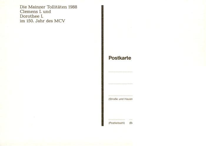 73924581 Mainz Rhein Die Mainzer Tollitaeten Clemens I und Dorothee I des MCV postalisch nicht gelaufen Erhaltung siehe scans [WerneD78] KatCode: 11110007315000
