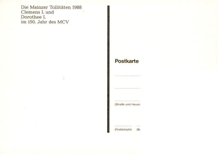 73924583 Mainz Rhein Die Mainzer Tollitaeten Clemens I und Dorothee I des MCV postalisch nicht gelaufen Erhaltung siehe scans [WerneD78] Wern Katcode 11110007315000