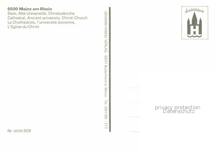 72745918 Mainz Rhein Dom Alte Universitaet Christuskirche postalisch nicht gelaufen Erhaltung siehe scans [FriedD77] KatCode: 11110007315000