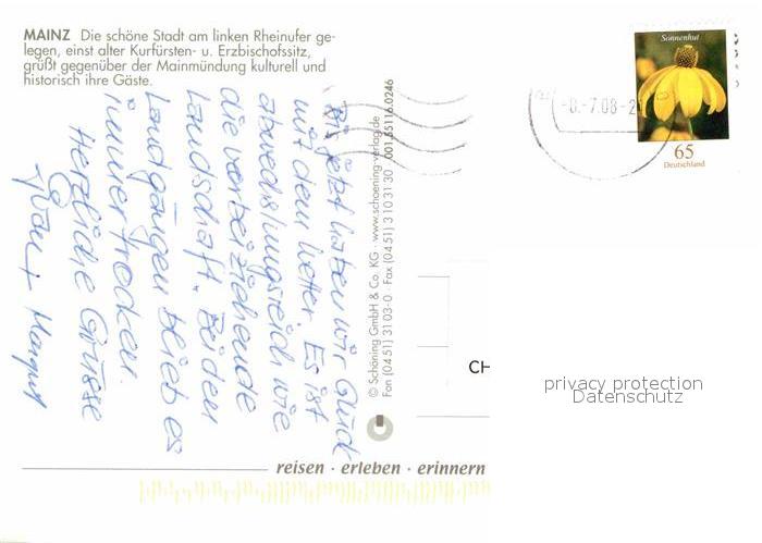 72721757 alte Postkarte Mainz Rhein Dom Christuskirche postalisch gelaufen Erhaltung siehe scans [KathaD79] KatCode: 11110007315000