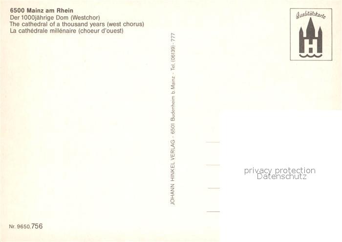 73207178 Mainz Rhein Dom Fontaine postalisch nicht gelaufen Erhaltung siehe scans [KathaD81] KatCode: 11110007315000