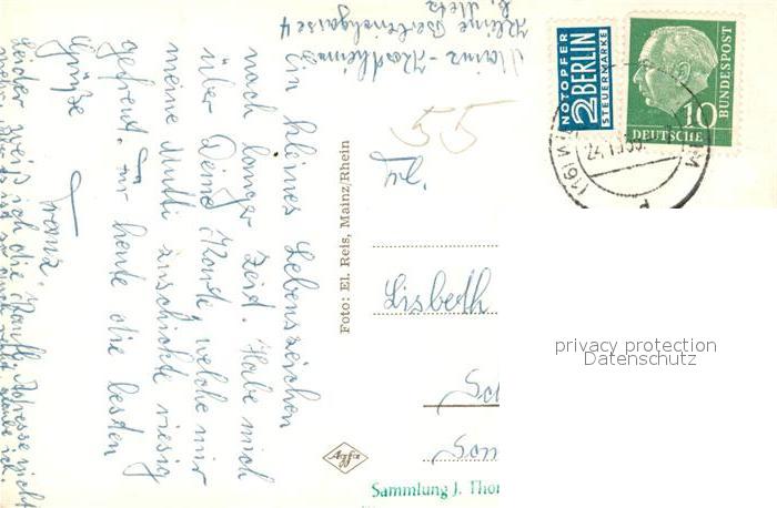 43039112 alte Postkarte Mainz Rhein Dom Gutenberg Denkmal Stephansdom Strassenbruecke Universitaet postalisch gelaufen Erhaltung siehe scans [FriedD77] KatCode: 11110007315000