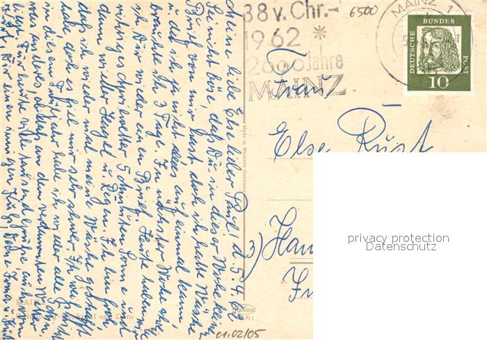 73128905 alte Postkarte Mainz Rhein Dom Gutenbergdenkmal postalisch gelaufen Erhaltung siehe scans [KathaD81] KatCode: 11110007315000