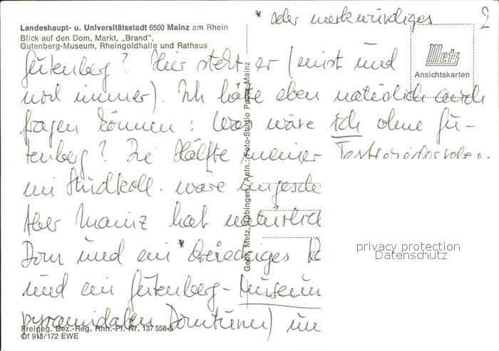 72419611 Mainz Rhein Dom Markt Brand Gutenberg Museum Rheingoldallee Rathaus Universitaetsstadt Fliegeraufnahme postalisch nicht gelaufen Erhaltung siehe scans KatCode: 11110007315000