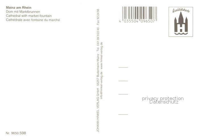 73176309 Mainz Rhein Dom Marktbrunnen postalisch nicht gelaufen Erhaltung siehe scans [PaolaD17] KatCode: 11110007315000