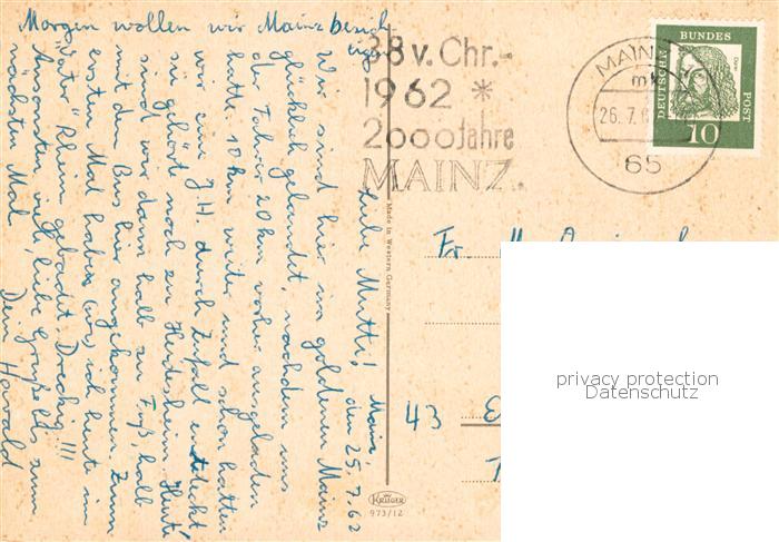 73871056 alte Postkarte Mainz Rhein Dom Rheinpartie Gutenberg Denkmal postalisch gelaufen Erhaltung siehe scans [WerneD78] KatCode: 11110007315000