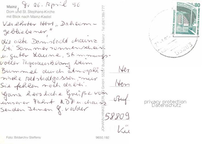 72706828 alte Postkarte Mainz Rhein Dom Sankt Stefanskirche postalisch gelaufen Erhaltung siehe scans [AndreD76] KatCode: 11110007315000
