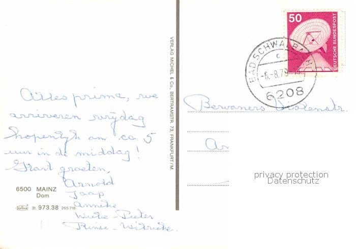 72655069 alte Postkarte Mainz Rhein Dompartie postalisch gelaufen Erhaltung siehe scans [LiesaD40] KatCode: 11110007315000
