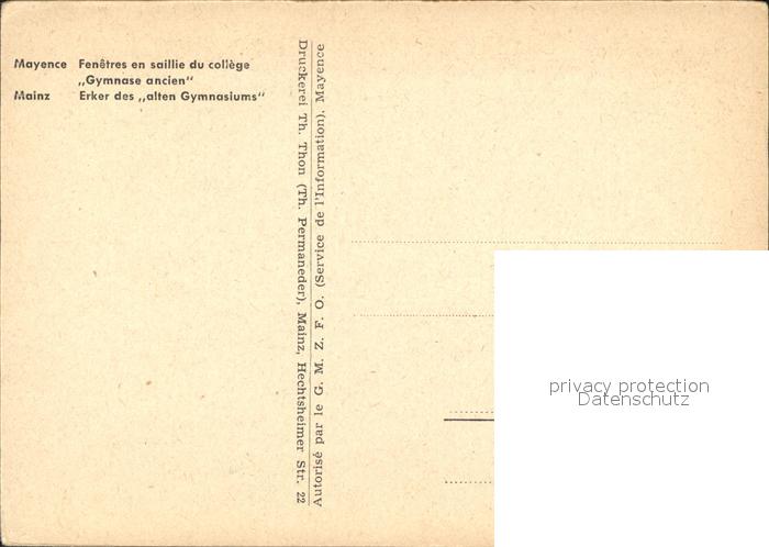 72085327 Mainz Rhein Erker des alten Gymnasium Kuenstlerkarte postalisch nicht gelaufen Erhaltung siehe scans KatCode: 11110007315000
