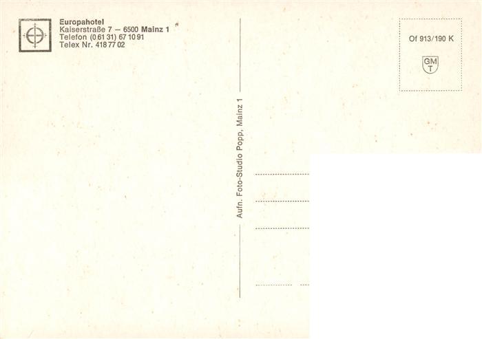 73887942 Mainz Rhein Europahotel Kirche postalisch nicht gelaufen Erhaltung siehe scans [WerneD78] KatCode: 11110007315000