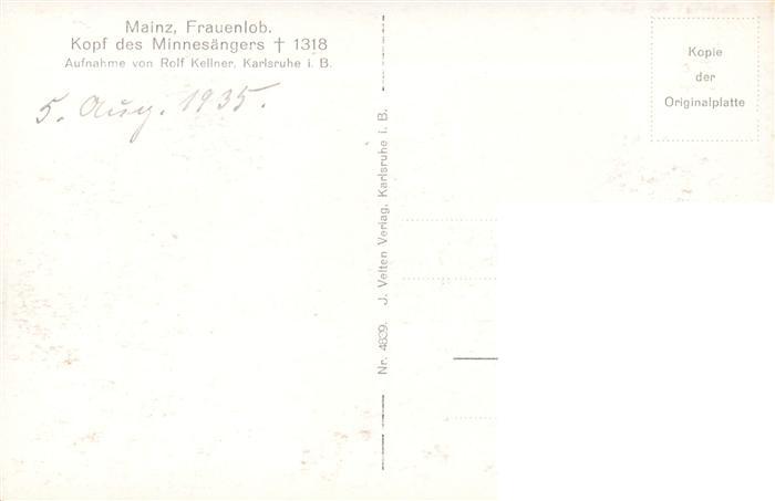 73902099 Mainz Rhein Frauenlob Kopf des Minnesaengers postalisch nicht gelaufen Erhaltung siehe scans [WerneD78] KatCode: 11110007315000