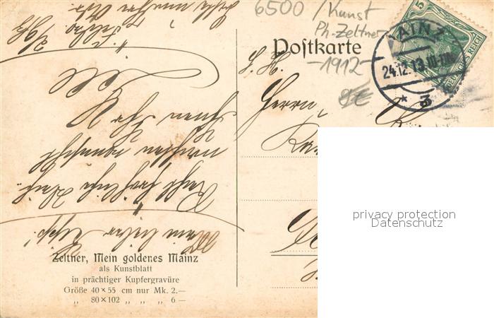73754284 alte Postkarte Mainz Rhein Gesamtansicht Boote Kuenstlerkarte Ph.Zeltner postalisch gelaufen Erhaltung siehe scans [LiesaD40] KatCode: 11110007315000