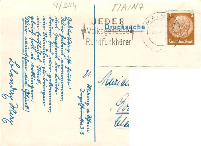 73886976 alte Postkarte Mainz Rhein Glueckwunschkarte postalisch gelaufen Erhaltung siehe scans [FriedD77] KatCode: 11110007315000