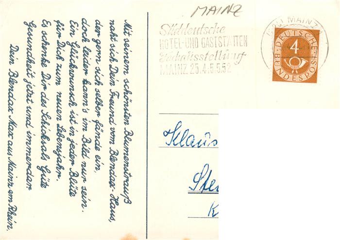 73886972 alte Postkarte Mainz Rhein Glueckwunschkarte postalisch gelaufen Erhaltung siehe scans [FriedD77] KatCode: 11110007315000