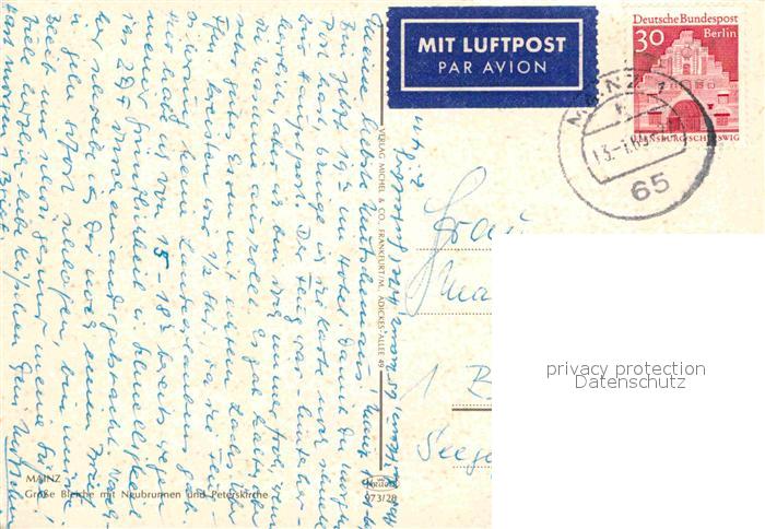 72915162 alte Postkarte Mainz Rhein Grosse-Bleiche mit Neubrunnen und Peterskirche postalisch gelaufen Erhaltung siehe scans [LiesaD40] KatCode: 11110007315000