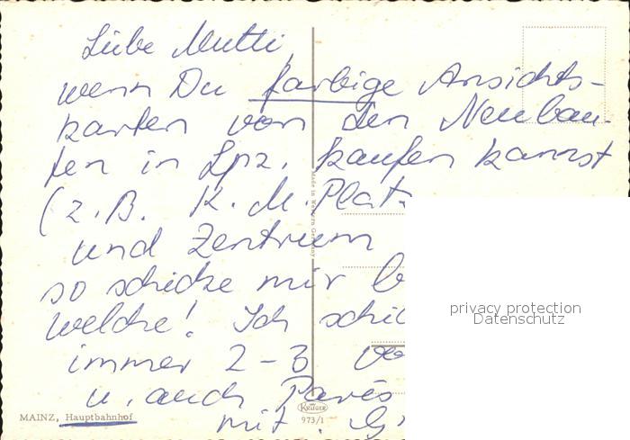 72536051 Mainz Rhein Hauptbahnhof postalisch nicht gelaufen Erhaltung siehe scans [AndreD76 kt121box] KatCode: 11110007315000