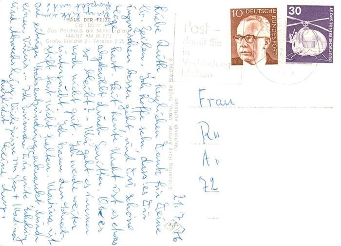 73887491 alte Postkarte Mainz Rhein Haus der Pelze Partie am Rhein Dom postalisch gelaufen Erhaltung siehe scans [FriedD77] KatCode: 11110007315000