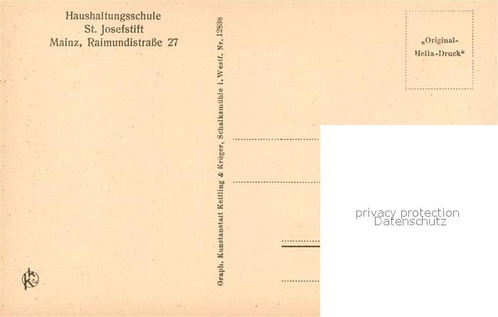 33604374 Mainz Rhein Haushaltungsschule St Josefstift Probekueche I postalisch nicht gelaufen Erhaltung siehe scans [WerneD78] KatCode: 11110007315000