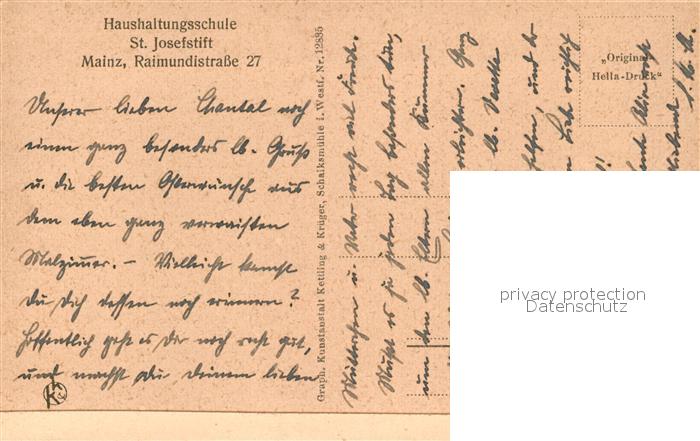 73602953 Mainz Rhein Haushaltungsschule St Josefstift Zeichen und Malzimmer postalisch nicht gelaufen Erhaltung siehe scans [WerneD78] KatCode: 11110007315000