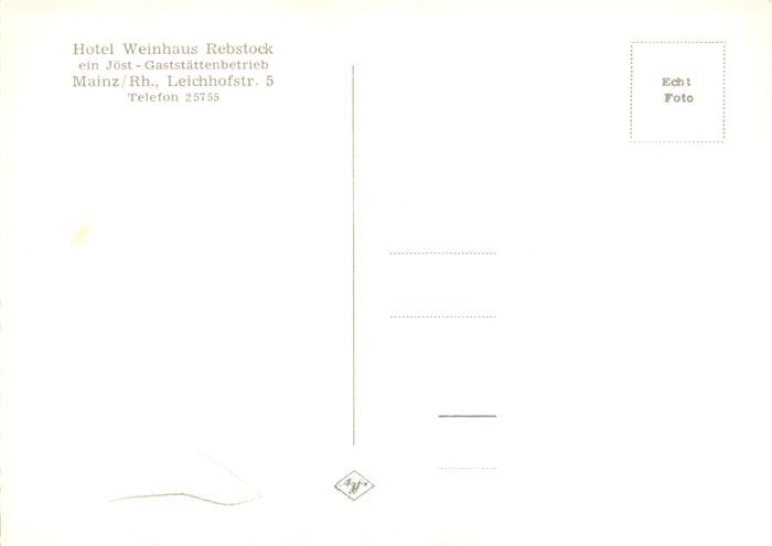 73896377 Mainz Rhein Hotel Weinhaus Rebstock Restaurant postalisch nicht gelaufen Erhaltung siehe scans [FriedD77] KatCode: 11110007315000