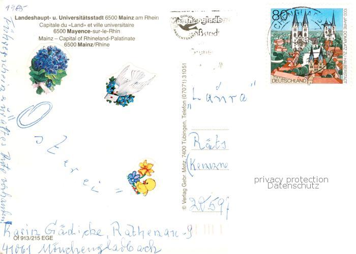 73845268 alte Postkarte Mainz Rhein Joh Gutenberg Universitaet Brunnen Gutenberg Bueste postalisch gelaufen Erhaltung siehe scans [FriedD77] KatCode: 11110007315000