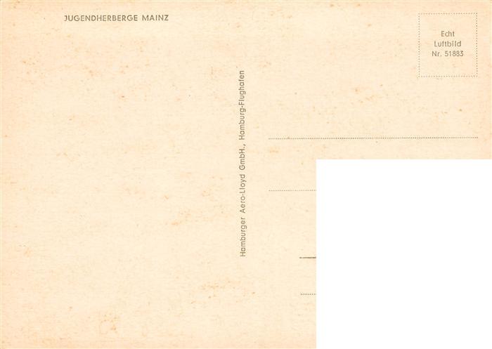 73888043 Mainz Rhein Jugendherberge Fliegeraufnahme postalisch nicht gelaufen Erhaltung siehe scans [WerneD78] KatCode: 11110007315000